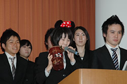 発表終了後、スカイホールロビーでは緊張から解き放たれた学生たちがクライアントの担当者の方々を囲んでの記念撮影に興じ、1年間の授業の終了を惜しむかのようにいつまでも懇談の輪が広がっていました。