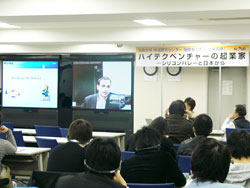 2007年12月1日(土)、市ケ谷キャンパスと本学アメリカ研究所(カリフォルニア州シリコンバレー)をインターネットで結んで開催しました。