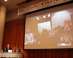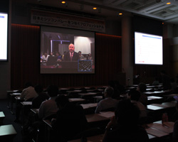法政大学とシリコンバレーにある本学アメリカ研究所を結び、双方の講演者のお話を日米それぞれの会場に集まった社会人や学部生、院生が熱心に聞き入りました。